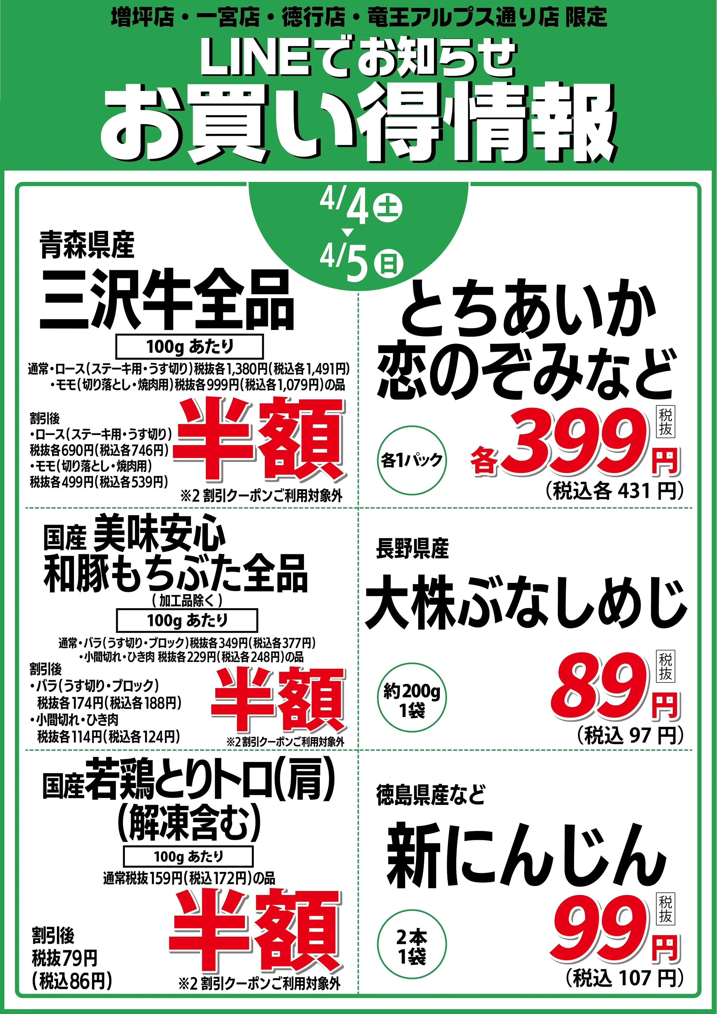 増坪店・一宮店・徳行店・竜王アルプス通り店 限定