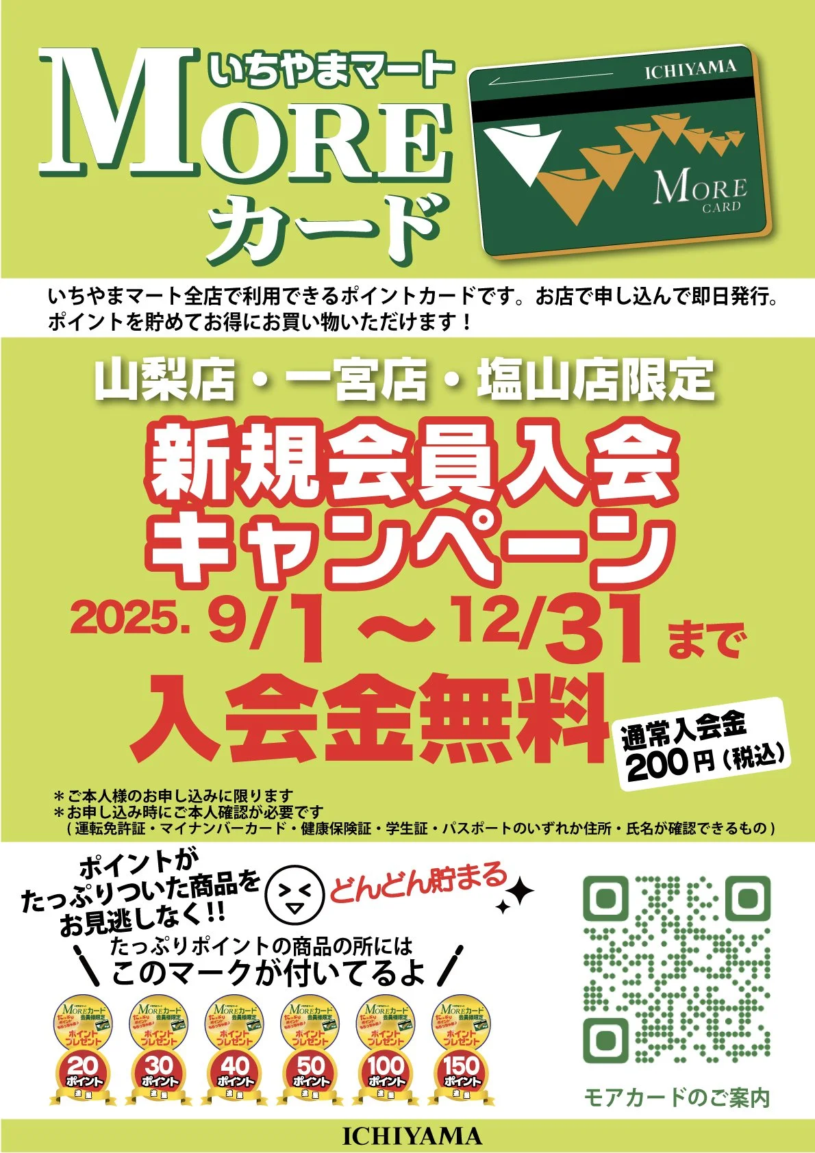 【山梨店・一宮店・塩山店限定!】MOREカード 新規会員入会キャンペーン開催中!【2025年12月31日まで】