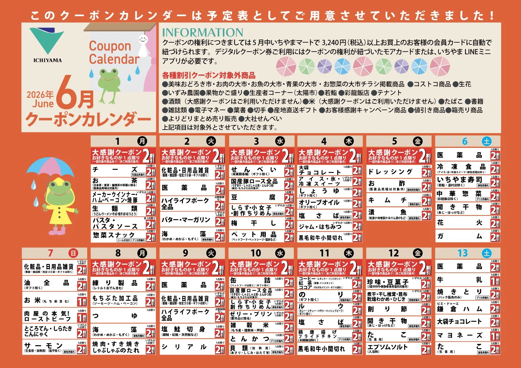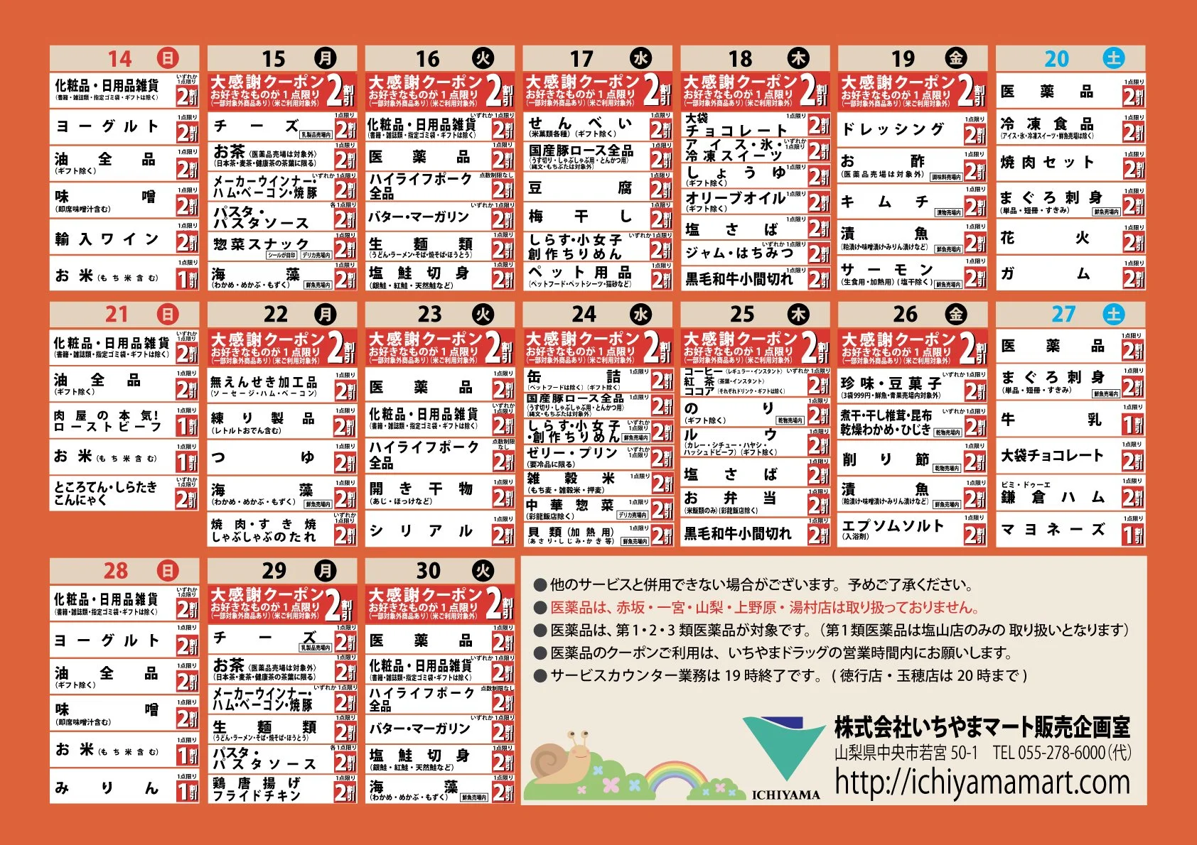 最新のクーポン券 お知らせ Mar 8 Written By いちやまマート 株式会社 今月のポイントセールは → こちら からご確認ください4月に使えるクーポン券 5月に使えるクーポン券 5月に使えるクーポン券 チラシクーポンポイントセール いちやまマート 株式会社