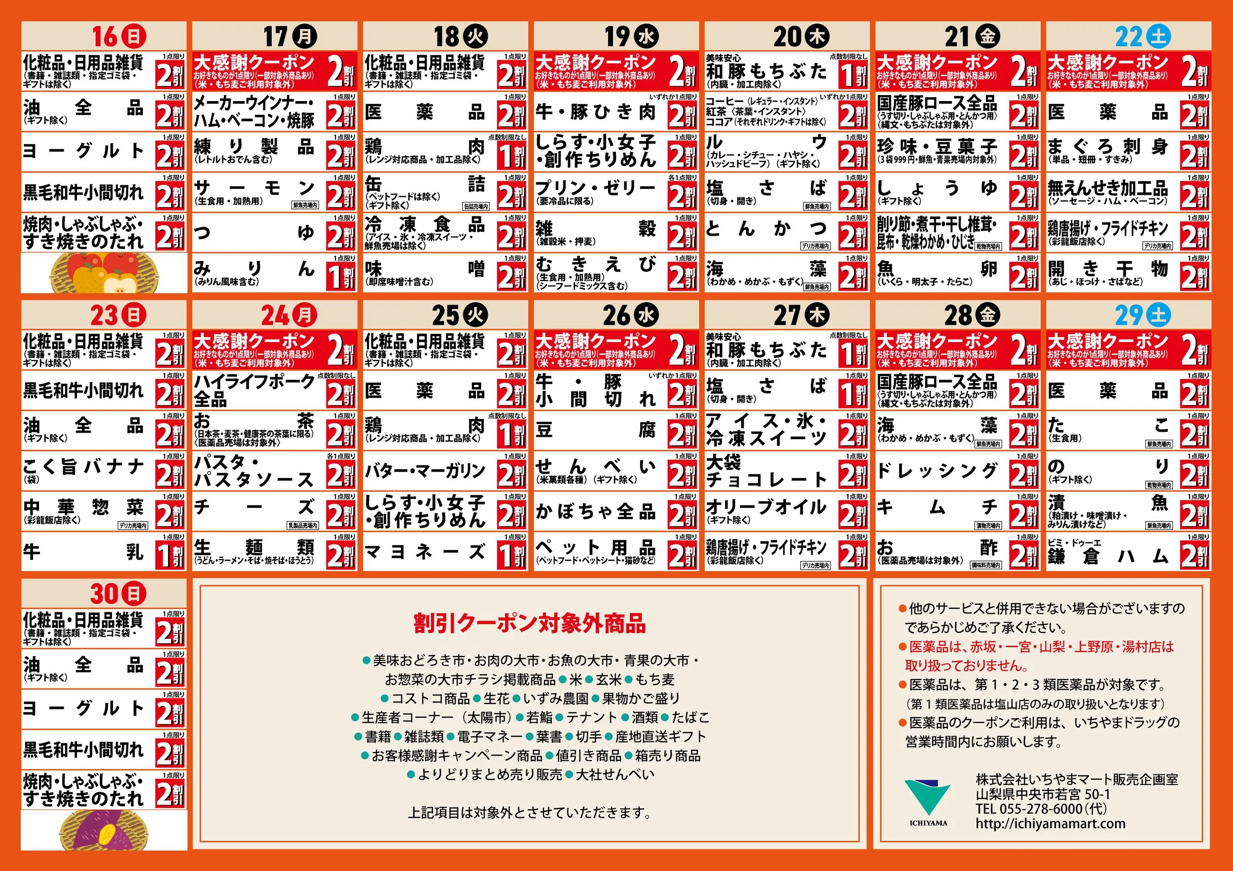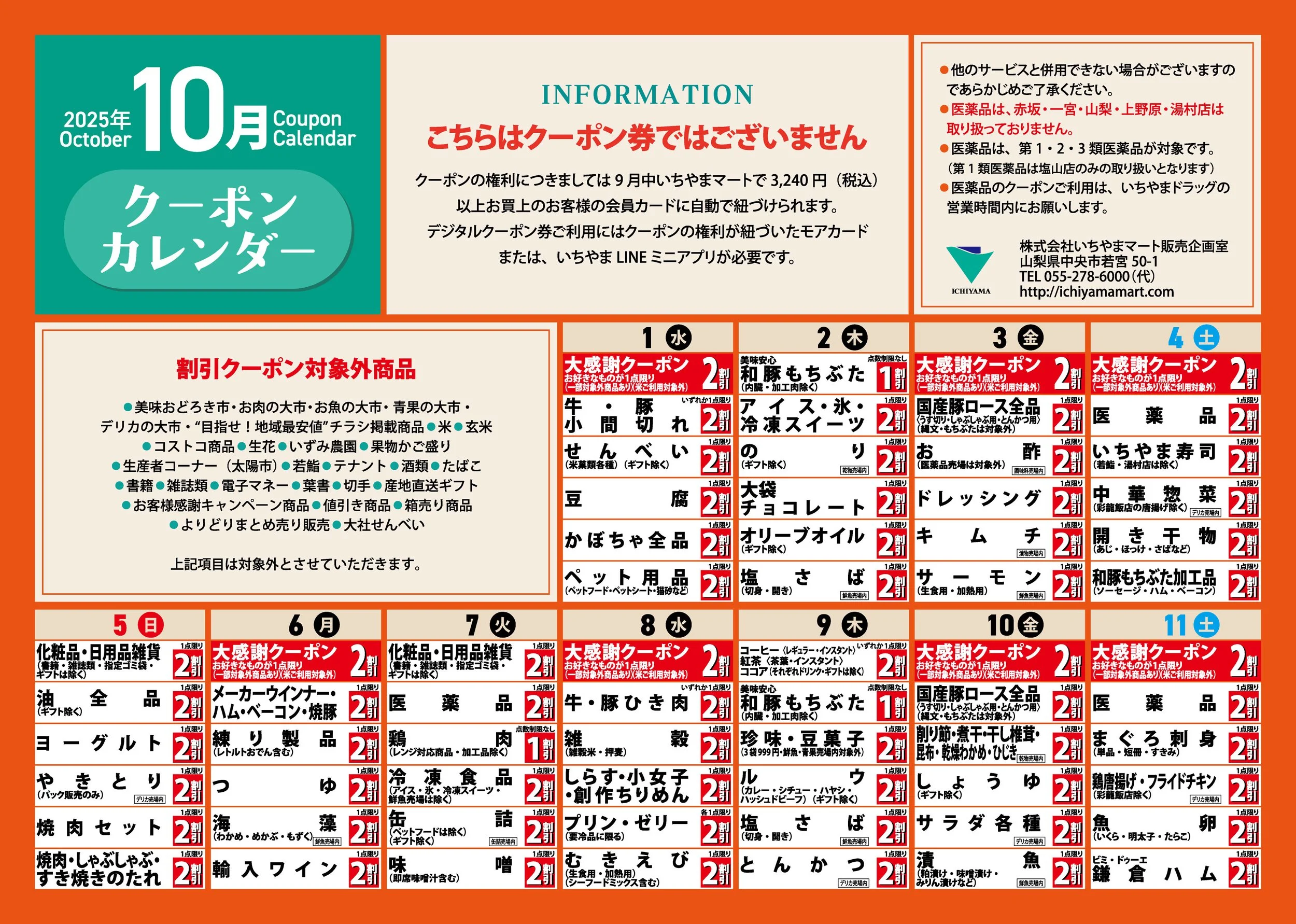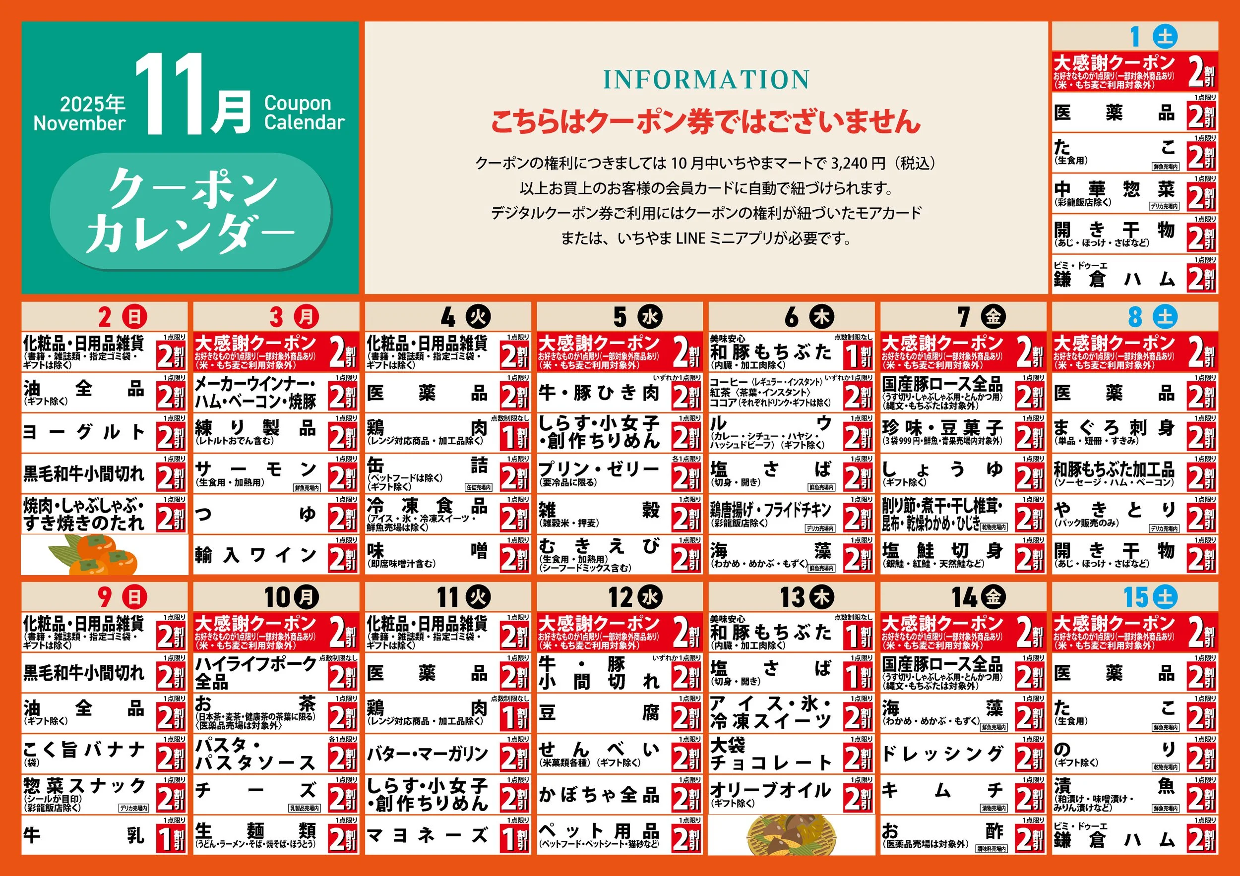 クーポン券は前月中に、いちやまマートで3,240円以上(税込)お買上げを頂いたお客様にご提供させて頂いております。