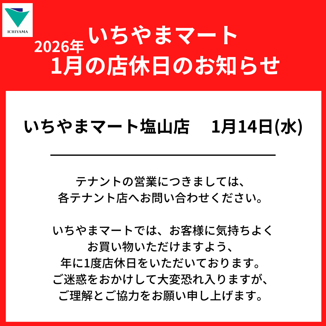 いちやまマート2026年1月の店休日をお知らせいたします。