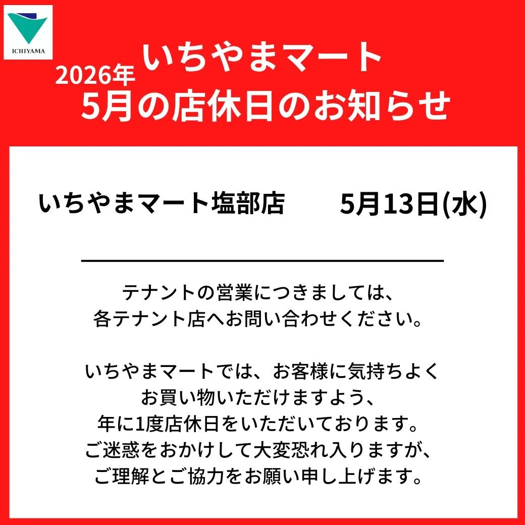 いちやまマート塩部店 5月13日(水)