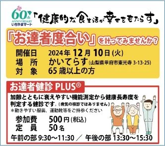 いちやまマートは「健康をサポートするスーパー」として、店舗が所在する山梨県・長野県の地域のみなさんが、病気をすることなく、いつまでも健康で元気で、美味しく食べられて、長生きできるように、専門家の視点を交えてサポートしています。