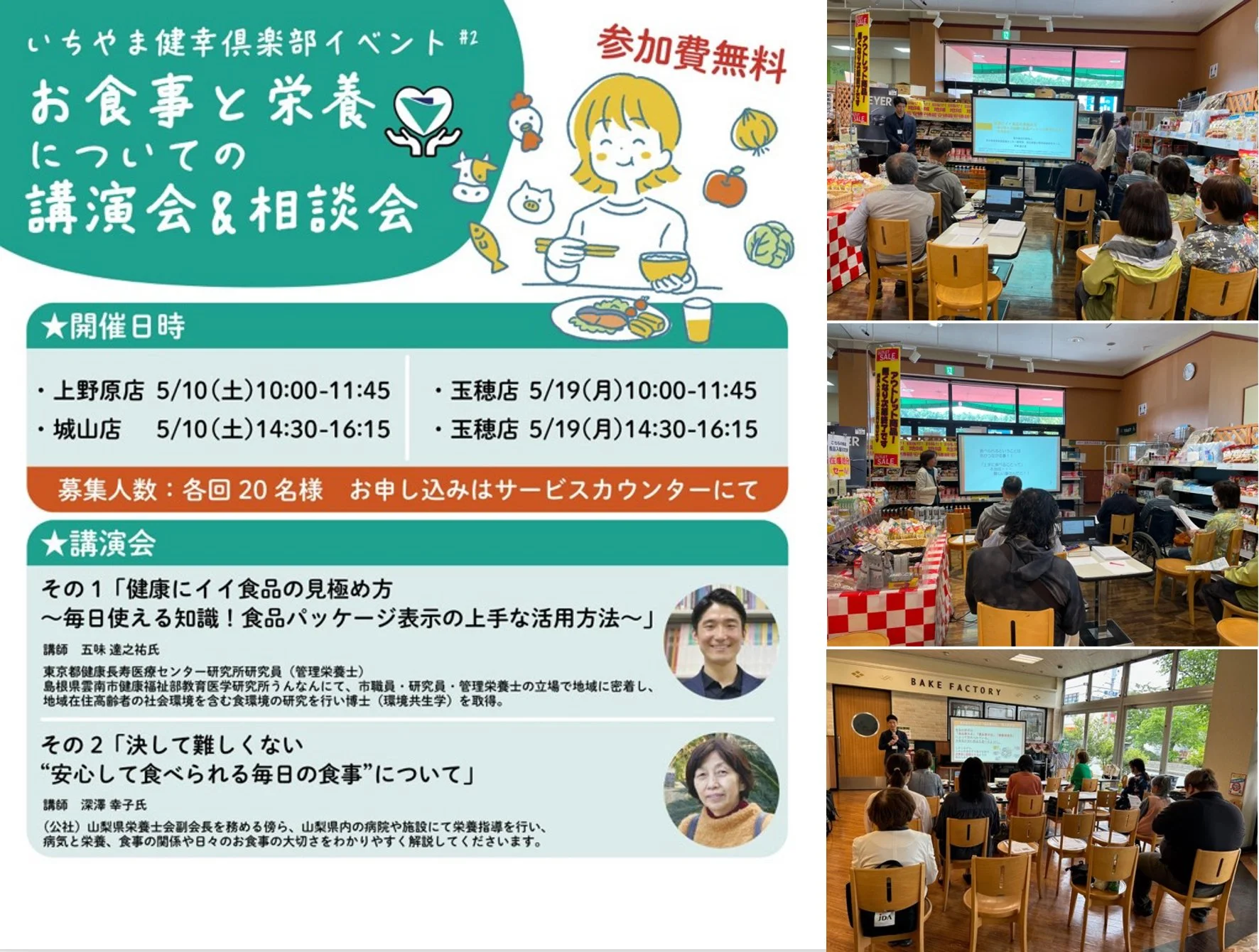 いちやま健幸倶楽部では、経営理念である「健康的な食生活が幸せをもたらす」の実現に向けて、最新の健康科学の知見を活用し、食を中心とした「健康」と「幸せ」に関するいろんな活動を行っています。